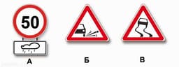 Какие из указанных знаков распространяют свое действие только на период времени, когда покрытие проезжей части влажное?