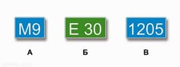Какие из указанных знаков используются для обозначения номера, присвоенного дороге (маршруту)?