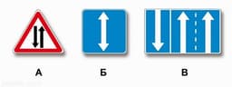Какие из указанных знаков информируют о приближении к началу участка дороги со встречным движением?