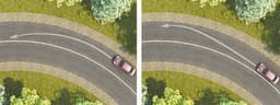 При повороте налево обеспечение безопасности движения достигается путем выполнения поворота по траектории, которая показана: